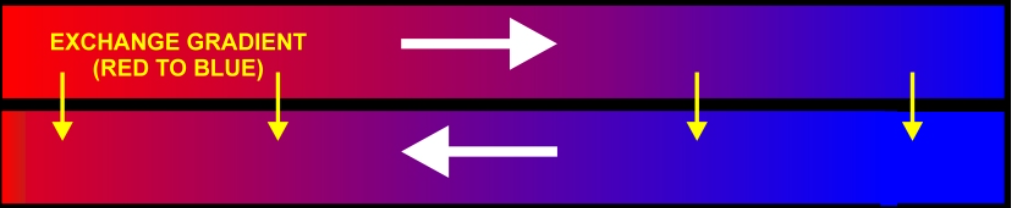 The Leatherback has also adapted a countercurrent heat exchange mechanism in order to efficiently find food without freezing to death. Countercurrent heat exchange allows for the constant circulation of heat even in cold environments found at lower depths. As blood flows out from the core arteries to external appendages, heat is held, and then lost. To prevent an extreme loss in body heat, which often results in death, veins returning blood from the flippers run alongside the arterial veins. This countercurrent exchange allows the returning venous blood to heat up before re-entering the body core.