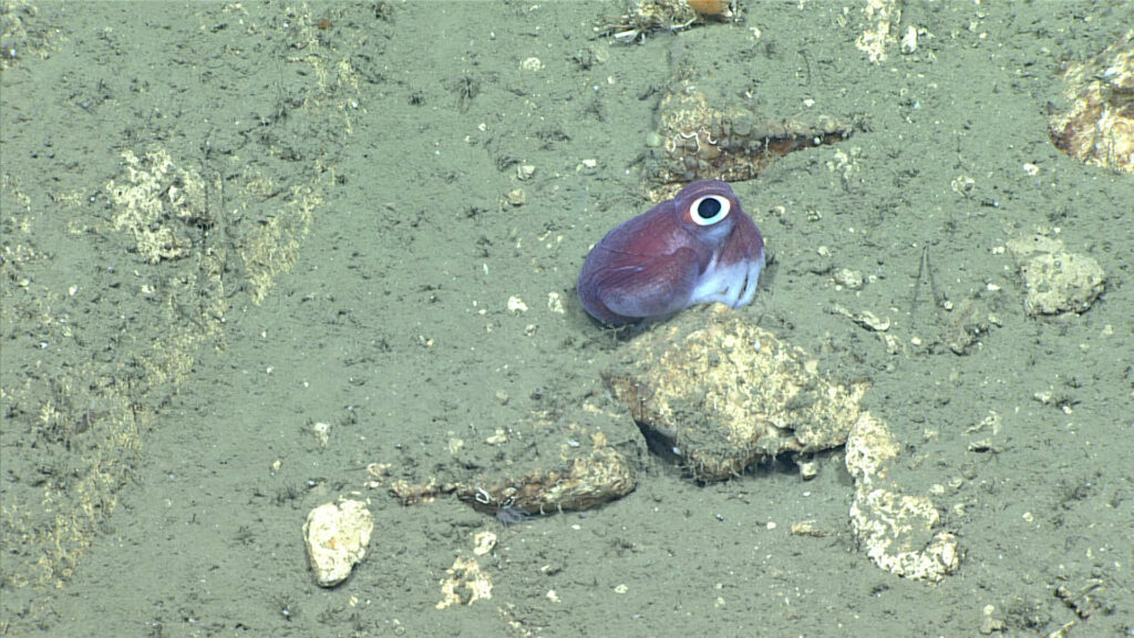Img 1: This image shows a picture of a bobtail squid seen on a diving expedition in Hudson Canyon the year 2021. This image will help visualize what the species look like to get a better understanding of the text.