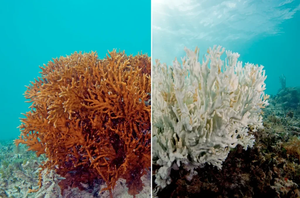 When zooxanthellae, the ymbiotic algae that reside inside corals tissues and supply the majority of their energy through photosynthesis, are expelled, coral bleaching takes place. These algae also give corals their vibrant colors. Under normal conditions, the coral-zooxanthellae relationship is mutually beneficial; however, even a slight rise in sea surface temperature can disrupt this delicate balance. When temperatures exceed long-term averages by as little as 1-2°C, corals experience physiological stress, causing them to lose their zooxanthellae and turn stark white (NOAA, 2021).