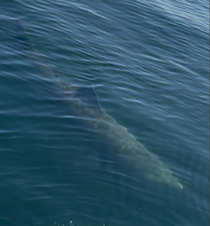 Juvenile basking shark spotted near the surface off the coast of Hampton Beach, NH. Photo by author.