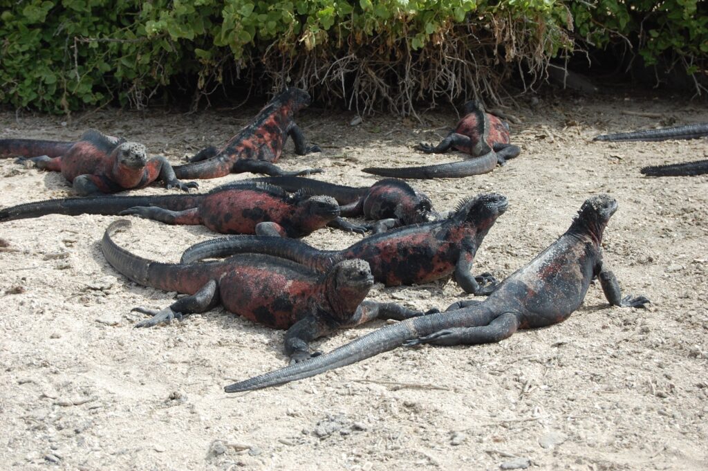 In order to adapt to an environment with less food availability, the iguanas have to find some way to reduce their energy output so they don’t have to eat as much. In general, smaller iguanas need less food than large iguanas, so many individuals within this species opt to reduce their body size pretty significantly after El Niño events. The Galápagos iguanas can achieve this by resorption (the destruction and absorption of tissue into the body) of not only soft tissue but hard tissue such as bone. It’s been found that these animals can decrease their overall body length by 17% on average and their girth by about 12%.