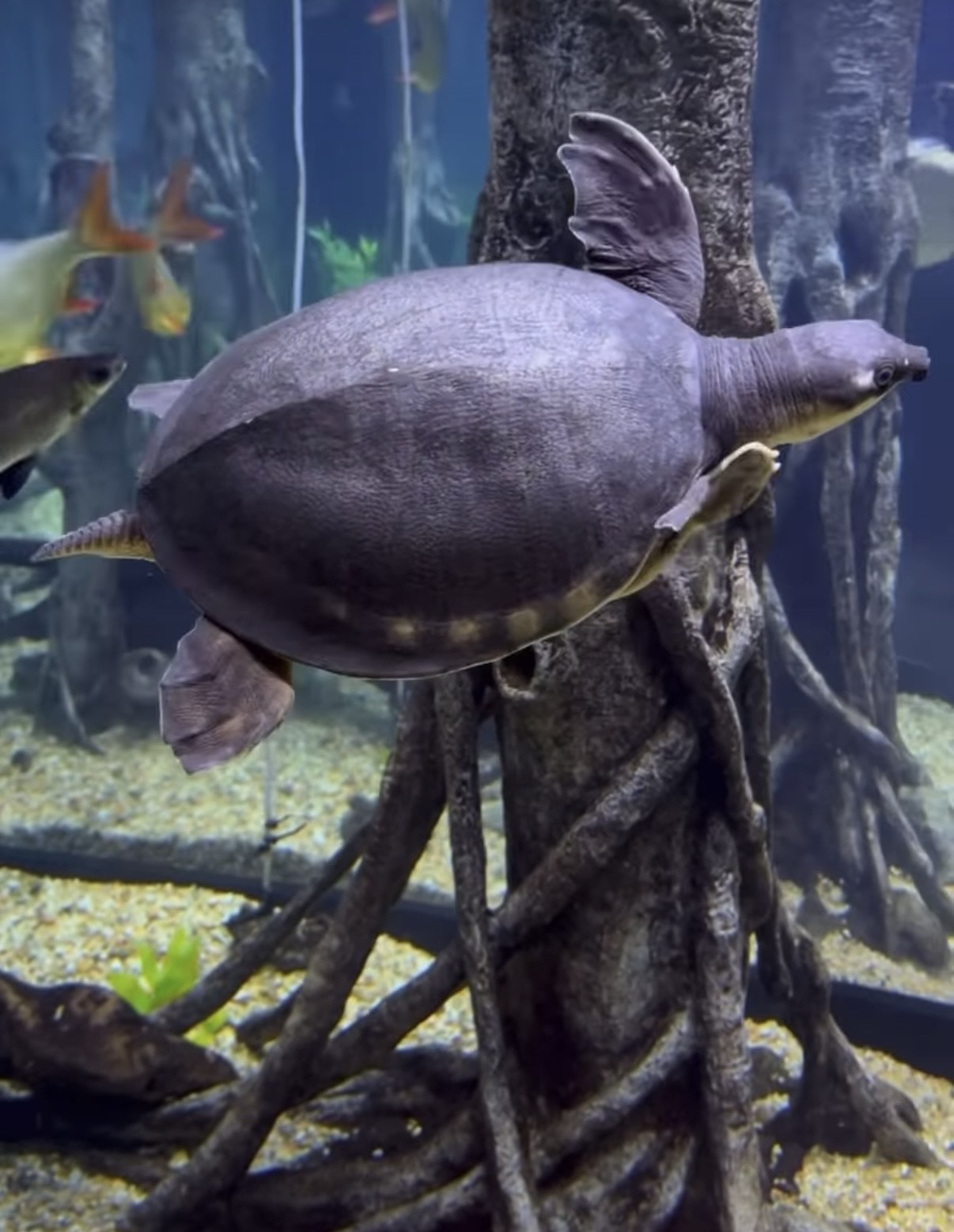 These differences can range from being miniscule such as a small change in their non-protein coding DNA, to a large difference, such as only being able to survive in a specific habitat (saltwater or freshwater) The evolutionary distinctiveness of the Fly River turtle is further supported by phylogenetic and paleontological evidence. As the sole surviving member of the family Carettochelyidae, the species is now isolated in freshwater systems in New Guinea and Australia. But back in the Miocene Era, fossil records show that related Carettochelyid turtles were once more widely distributed across different parts of Asia and the Indo-Pacific region. This shows that at one point of the time, that these turtles had a more expansive lineage. Over time, climatic shifts and geological changes probably contributed to the limiting of this family’s range, leaving Carettochelys insculpta the sole survivor, leaving them confined to the river systems of New Guinea and northern Australia. Its continued survival shows us a glimpse into an ancient evolutionary branch that has otherwise disappeared from the fossil record.