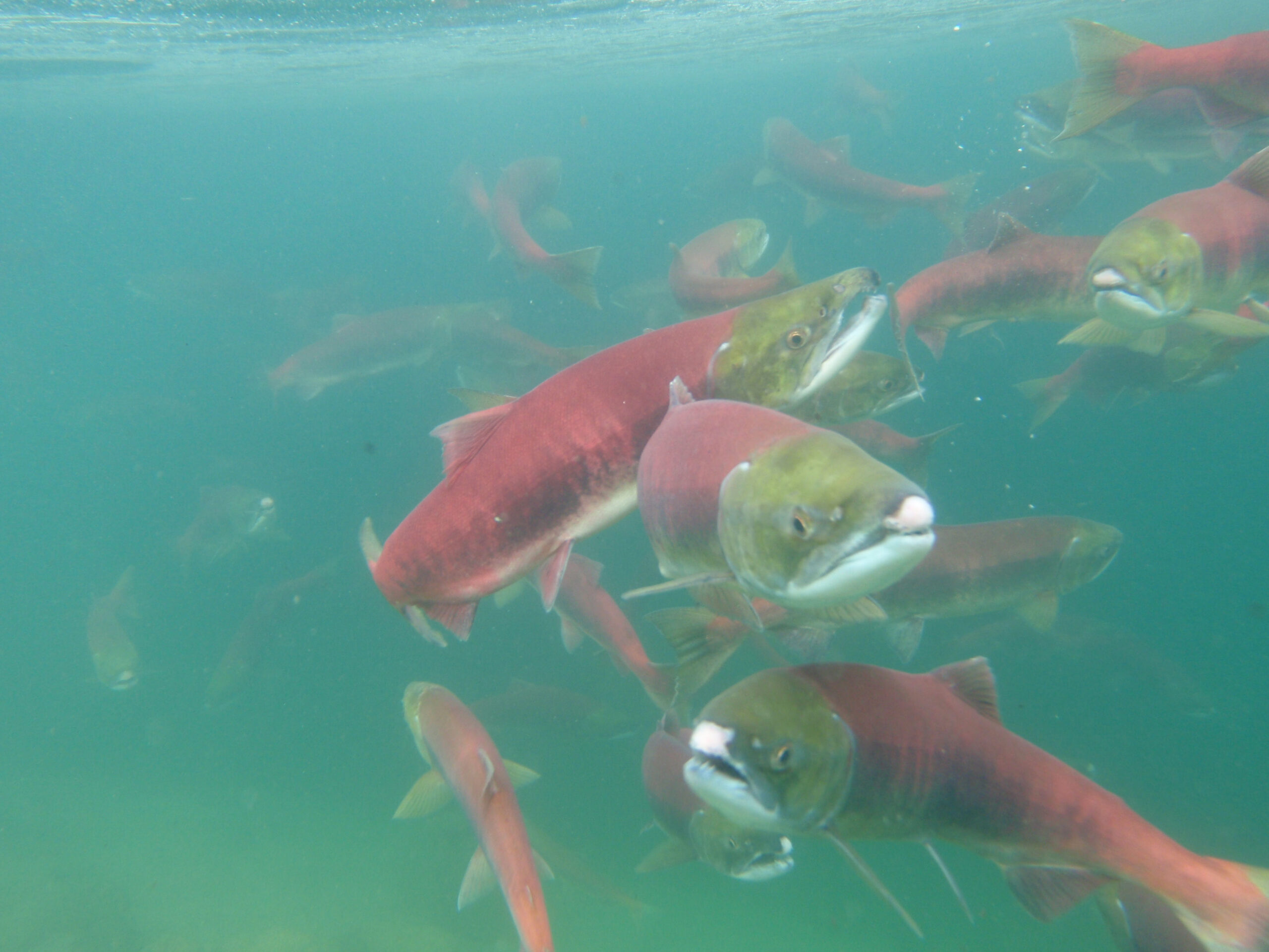 Image of adult Sockeye salmon(Oncorhynchus nerka) in the adult reproductive state (Image from NOAA)