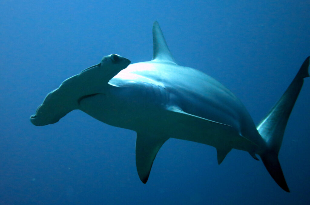 Scalloped Hammerhead Shark in the open ocean. Credit NOAA photo library