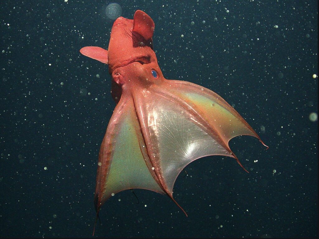 Vampyroteuthis infernalis moving through the deep (Image from National Geographic)