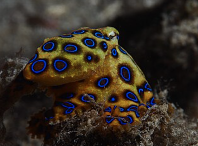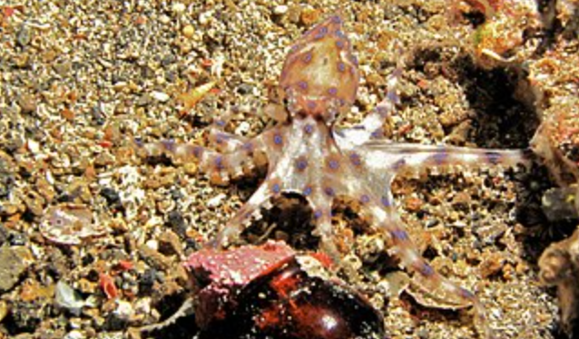 Southern blue-ringed octopus in Indonesia. Credit: Wikimedia Commons. Attribution: Bernard Dupont